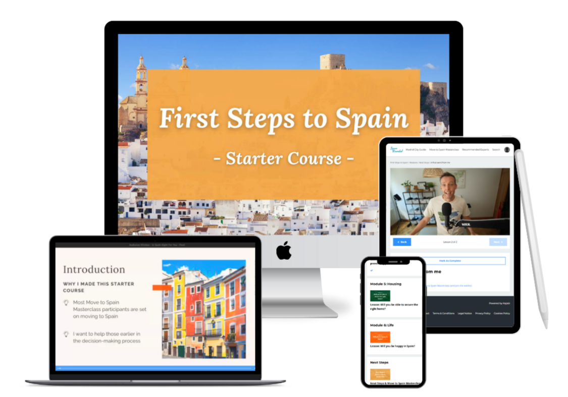 First Steps to Spain is a self-paced video course that tells you what's really involved in a move to Spain before you invest more time, money, and hope.